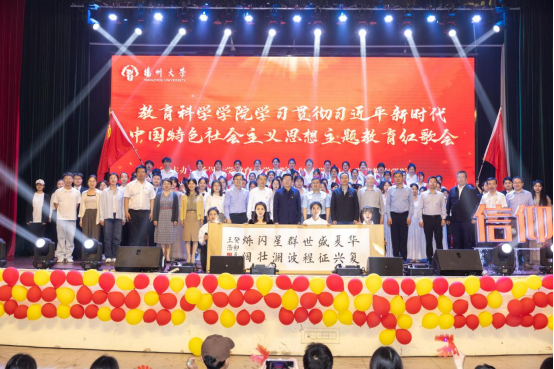 5月21日,教育科学学院在文汇路校区大礼堂举行学习贯彻习近平新时代中国特色社会主义思想主题教育红歌会。合唱会共分为“筚路开山河”、“盛世谱华章”、“热血赴未来”三个篇章,青年大学生们通过重温、传唱红色经典歌曲,用嘹亮的歌声、精彩的表演向党汇报主题教育的拳拳红心。自主题教育开展以来,学院牢牢把握 “学思想、强党性、重实践、建新功”的总要求,切实围绕中心工作开展主题教育,激励全体师生走在前、作表率、善作为、敢担当,把习近平新时代中国特色社会主义思想转化为坚定理想、锤炼党性、指导实践的强大力量,奋力推动学院事业高质量发展迈上新台阶。