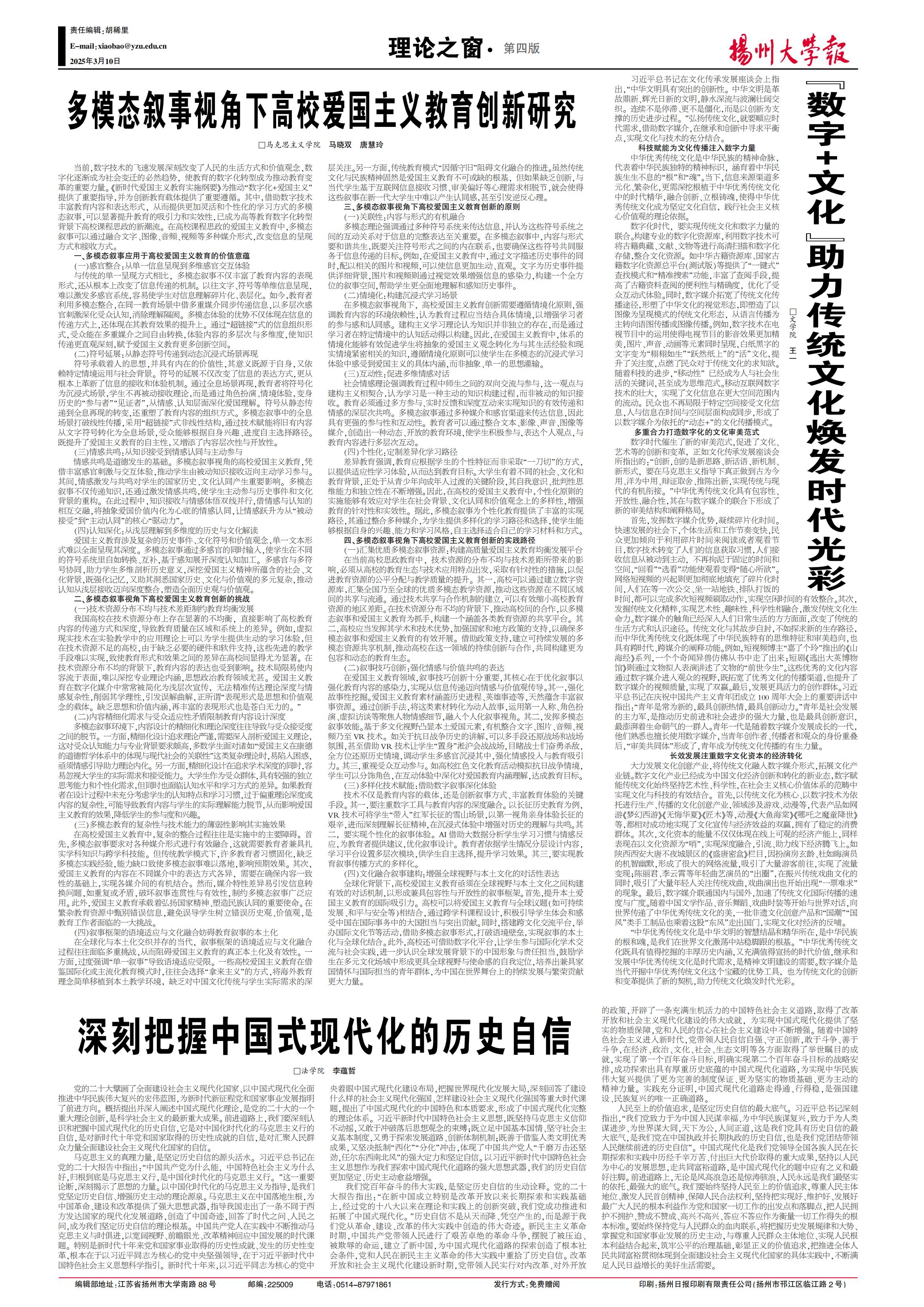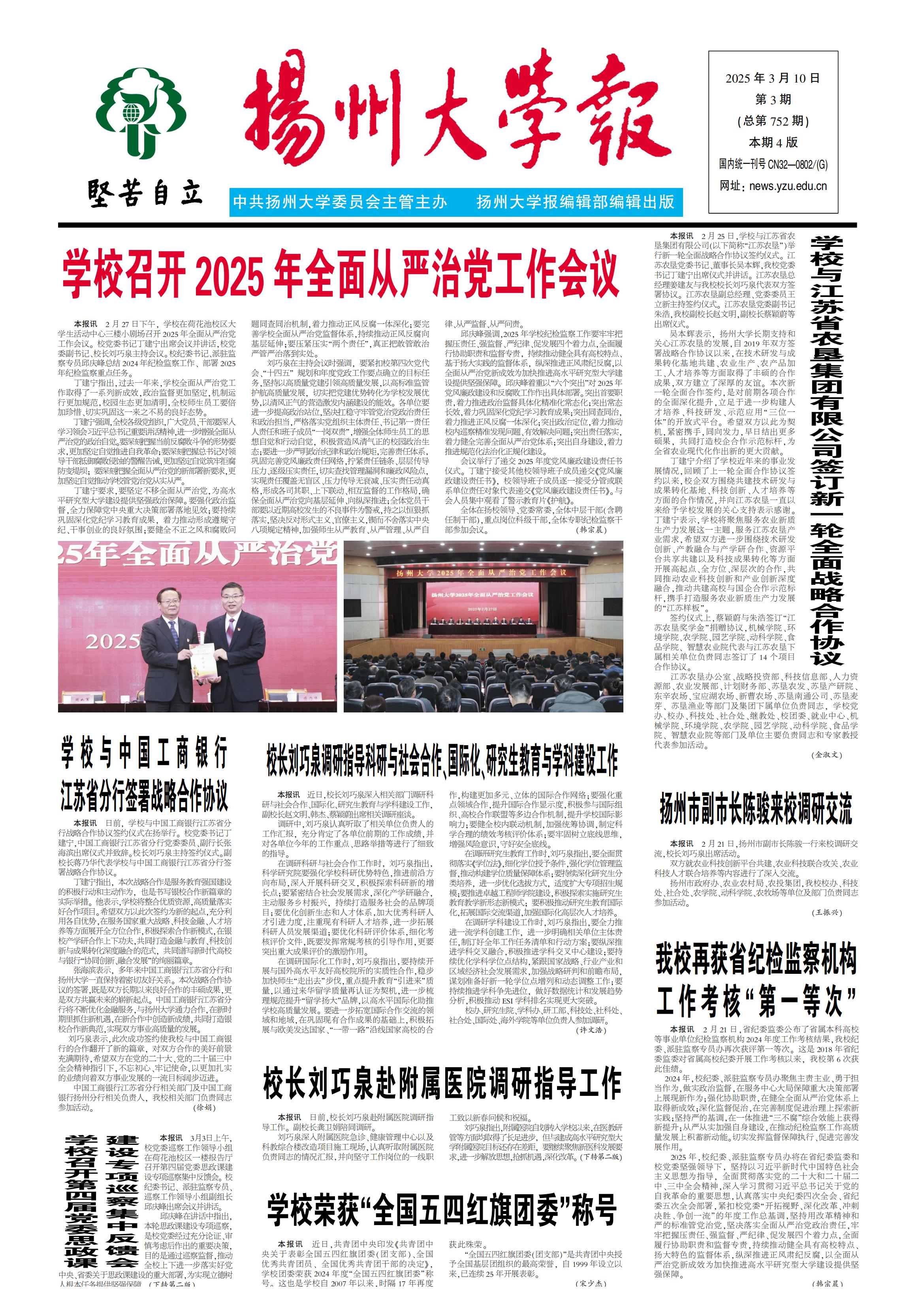 《扬州大学报》第752期(2025年03月10日)