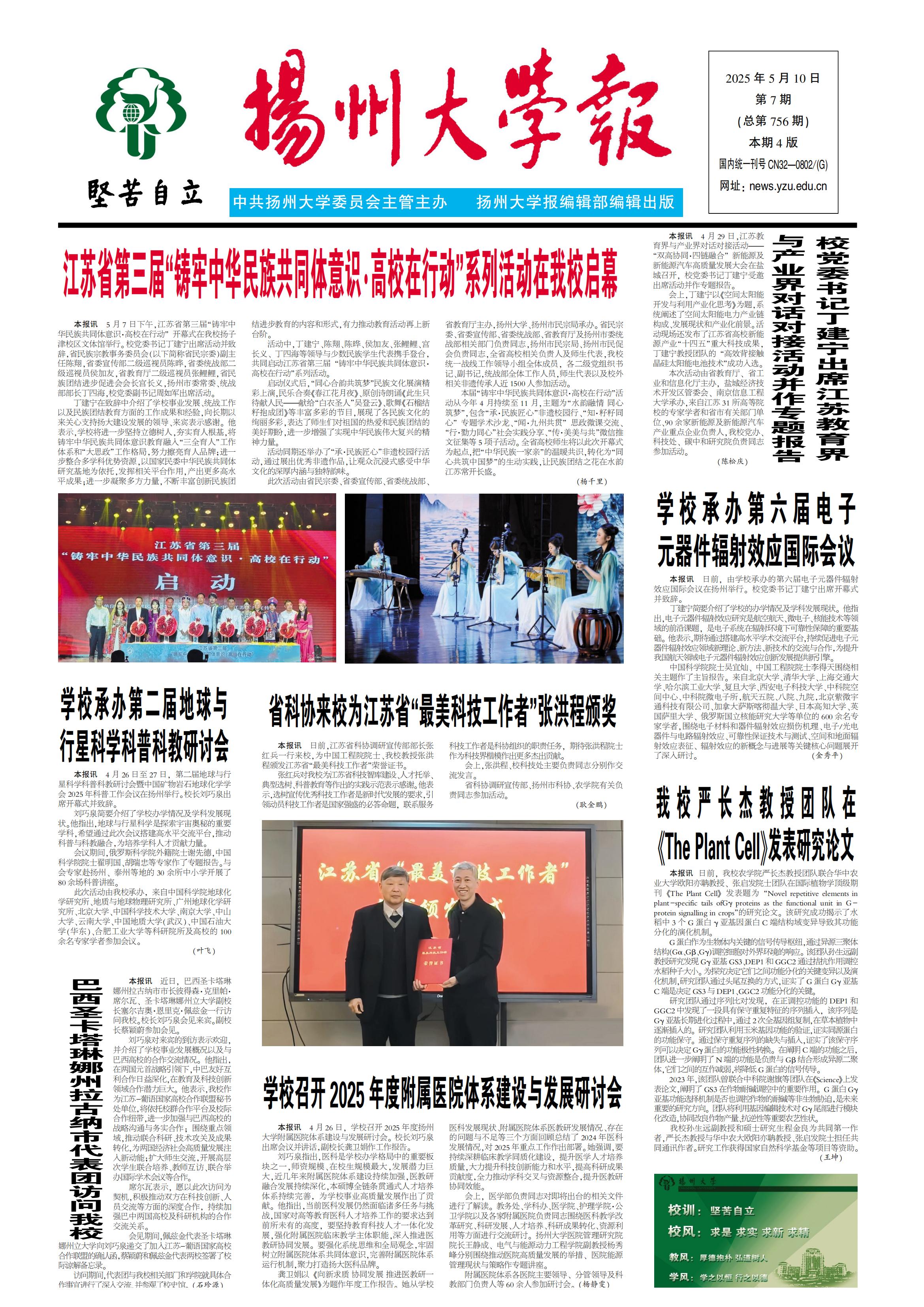 《扬州大学报》第756期(2025年05月10日)