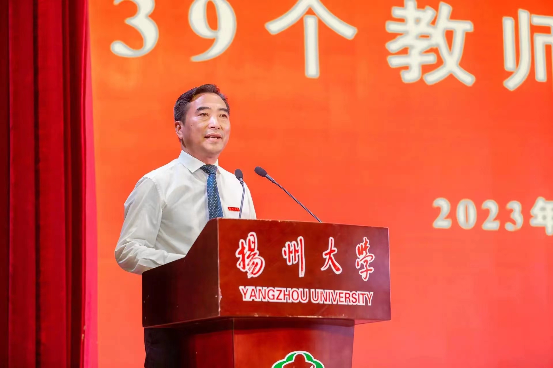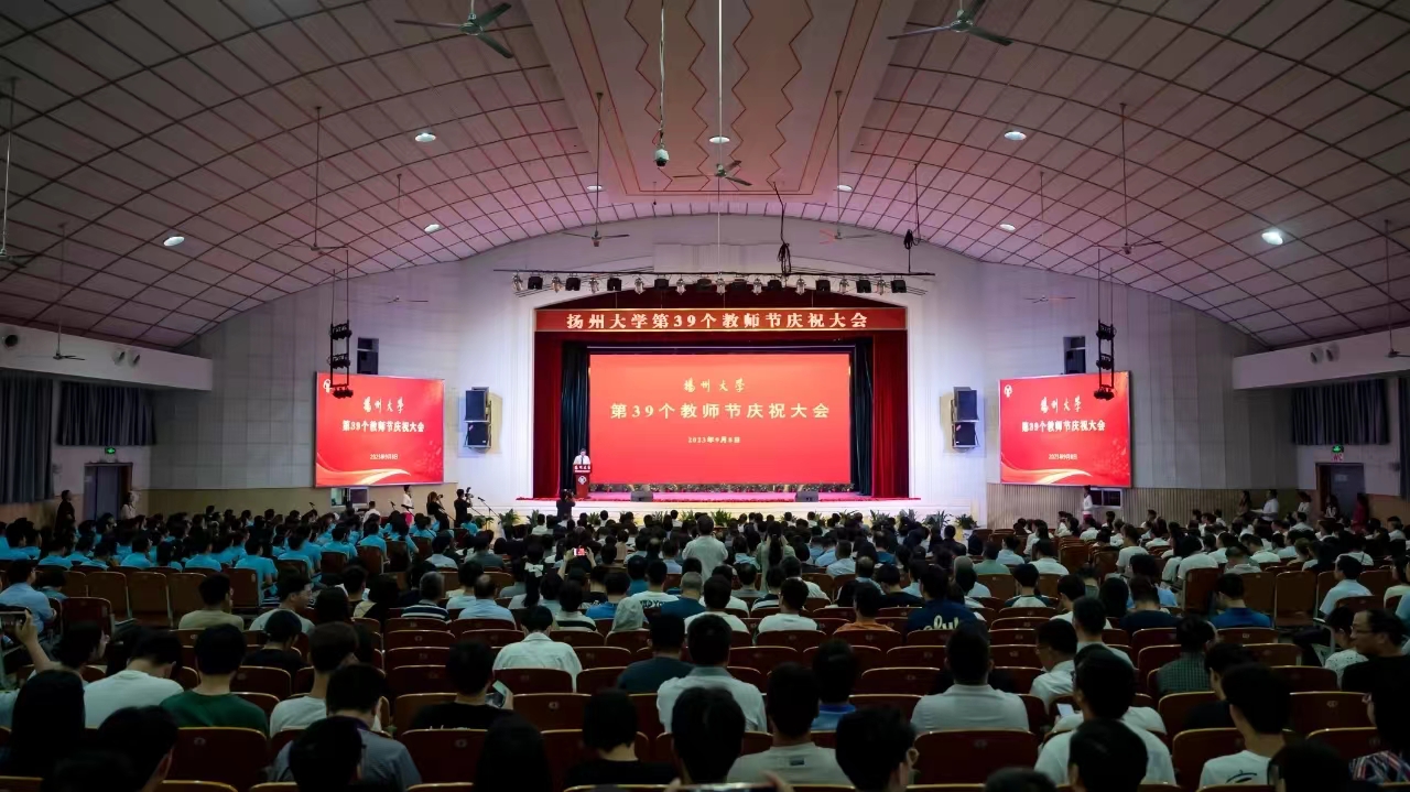 9月8日下午,学校在文汇路校区大礼堂举行第39个教师节庆祝大会,隆重表彰2023全国“最美教师”、何梁何利基金科学与技术创新奖获得者、第三届全国创新争先奖获得者等一批先进典型。校党委书记焦新安、校长丁建宁共同为国家级教学成果一等奖等奖项获得者颁奖并合影留念。丁建宁发表热情洋溢的讲话。校党委副书记周如军主持大会,蒋乃华、赵文明、龚卫娟、邱庆峰、韩杰、蔡颖蔚等校领导为有关获奖者颁奖。