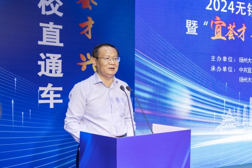 5月23日,2024无锡市“百企千才高校行”宜兴日暨“宜荟才 兴未来”高校直通车走进扬州大学活动在扬子津校区举行。校长丁建宁出席活动并致辞。副校长蔡颖蔚,宜兴市委常委、组织部部长钱怡,宜兴市副市长张达志等出席活动。