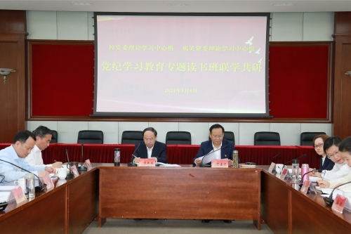 5月8日,校党委、机关党委理论学习中心组在荷花池校区行政楼一楼报告厅举行党纪学习教育专题读书班联学共研学习会。校党委书记焦新安主持会议并讲话。