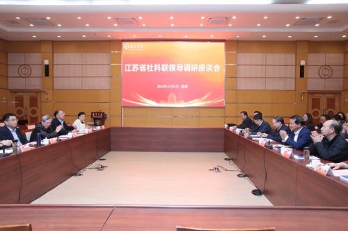 11月5日,省社科联党组书记、常务副主席张新科一行来我校开展哲学社会科学工作调研。校党委书记焦新安,省社科联兼职副主席杨忠、任利剑、姚冠新等出席会议。副校长蒋乃华主持会议。