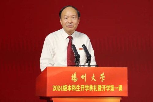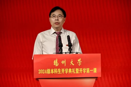 校党委书记焦新安以《高擎精神旗帜 赓续百廿荣光 努力做有志、有识、有为的新时代扬大好青年》为题,从大力弘扬爱国主义精神、坚苦自立精神和改革创新精神三个维度,为新生们讲授了精彩的“开学第一课”。焦新安说,扬州自古以来就是适宜生活学习的“好地方”,学校可以为大家求学问道、创新创行、筑梦逐梦提供强劲的支撑。他希望,广大新生弘扬爱国主义精神,在“小我融入大我”的生动实践中擦亮青春底色;弘扬坚苦自立精神,在“理论联系实际”的学习实践中提高青春成色;弘扬改革创新精神,在“创新点亮梦想”的探索实践中凸显青春亮色,从“好地方”出发,向好未来而行,努力成为有志有识有为的新时代扬大好青年。