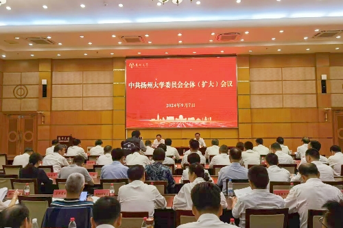 9月7日上午,中共扬州大学委员会全体(扩大)会议在荷花池校区主楼多功能厅召开。会议传达学习习近平总书记重要指示和中央、省委党的建设工作领导小组会议精神,总结学校党纪学习教育情况,部署推进党纪学习教育常态化长效化工作。校党委书记焦新安作党纪学习教育总结报告并讲话,校长、党委副书记丁建宁主持会议。