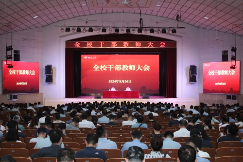 8月26日,学校在文汇路校区大礼堂召开2024-2025学年秋学期全校干部教师大会。校党委书记焦新安主持会议并发表题为《以改革添活力 用实干促发展 以钉钉子精神推进年度目标任务落地落实》的总结讲话。校长丁建宁作工作报告。全体在扬校领导、党委常委出席会议。