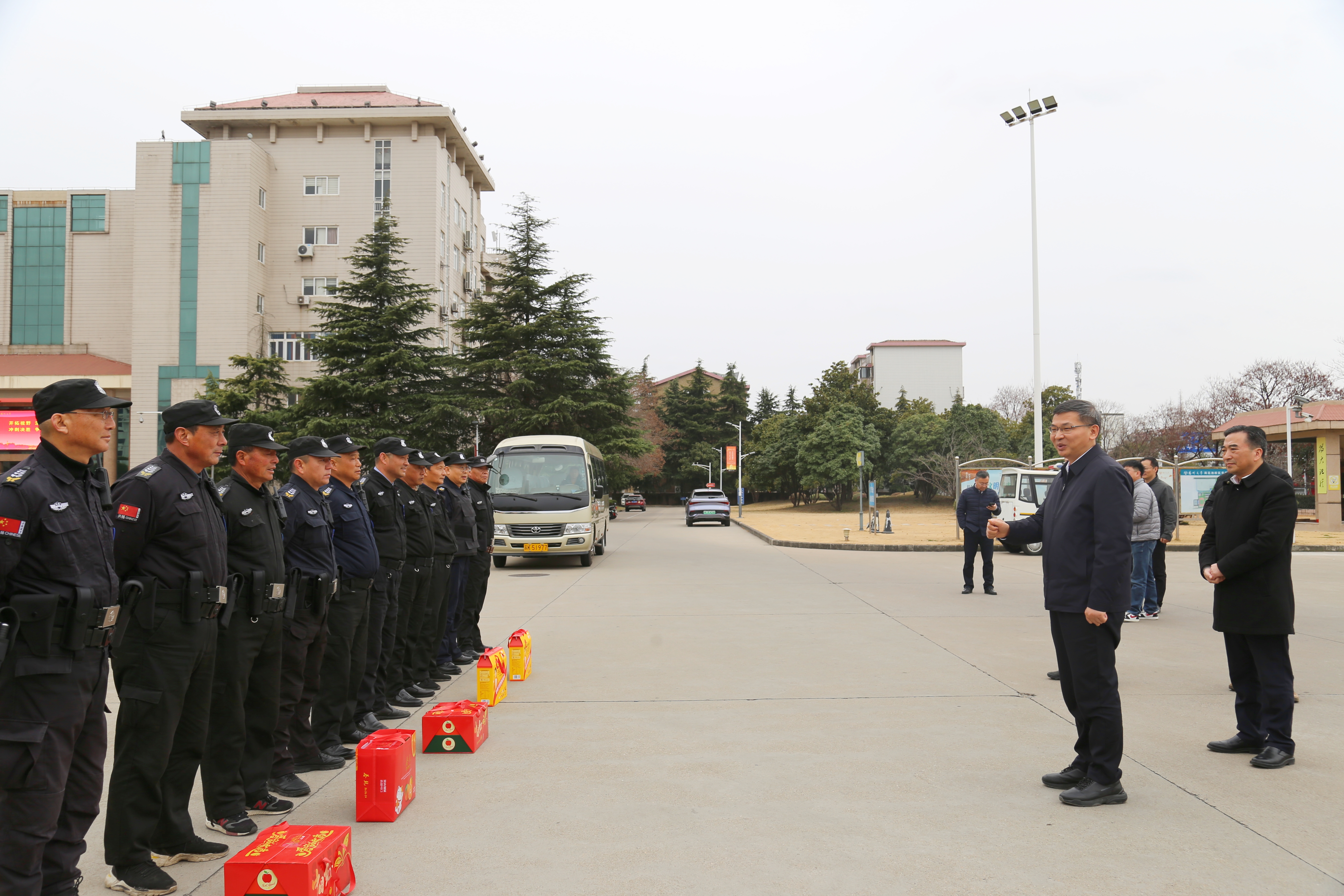 刘巧泉来到农牧场、保卫处、学生公寓、后勤处等单位,认真听取了相关单位负责同志的工作汇报,并向一线教职工和海外留学生致以新年的祝愿。每到一处,刘巧泉都亲切询问大家的工作和生活情况,叮嘱大家在留守校园的同时,要注意防寒保暖,勉励大家在新的一年里再创新佳绩。他强调,各单位必须高度重视假期校园安全工作,始终守牢安全防线,做好治安、消防、交通等方面的安全工作。在扬子津校区海外学生公寓,刘巧泉与国际学生代表一起贴福迎春,用春联和福字送上新春的美好祝愿,并鼓励留校国际学生利用在华学习的机会,充分体会中国传统佳节的魅力。