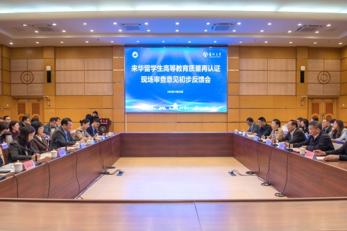 此次现场审查为期2天,专家组围绕学校来华留学顶层设计、资源与保障、教学与培养、管理与服务、质量监控以及办学成效等方面,与分管校领导及职能部门、院系负责人,归口管理部门代表、师生代表等进行深度访谈,通过实地考察来华留学生教学生活场所,开展课堂观摩以及查阅档案等多种方式,全方位了解学校来华留学生教育教学管理和国际人才培养情况。
