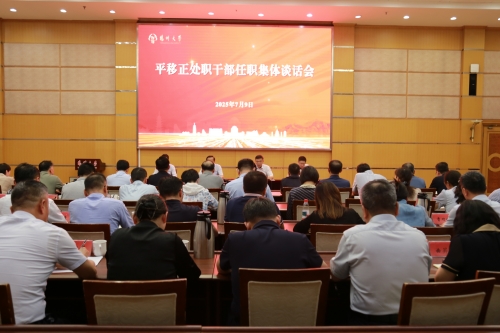 7月9日下午,学校在荷花池校区教学主楼二楼多功能厅组织召开平移正处职干部任职集体谈话会,校党委书记丁建宁、校长刘巧泉出席会议并讲话,校党委副书记周如军主持会议,校纪委书记、派驻监察专员邱庆峰作集体廉政谈话。