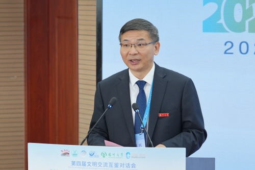 刘巧泉向海内外嘉宾介绍了学校的办学情况,尤其是在国际交流与合作方面的工作成绩。刘巧泉指出,当今世界正处于百年未有之大变局,人类文明比任何时候都需要对话与共生。今天的青年一代,既是我们信息时代的数字原住民,更是文明传承的创新实践者。希望大家以谦逊之心倾听不同文明的声音,以创造性思维寻找共同价值,在展示中增进理解,在协作中破解难题,共同架起文明互鉴的桥梁,让东方智慧与世界文明在此交相辉映。