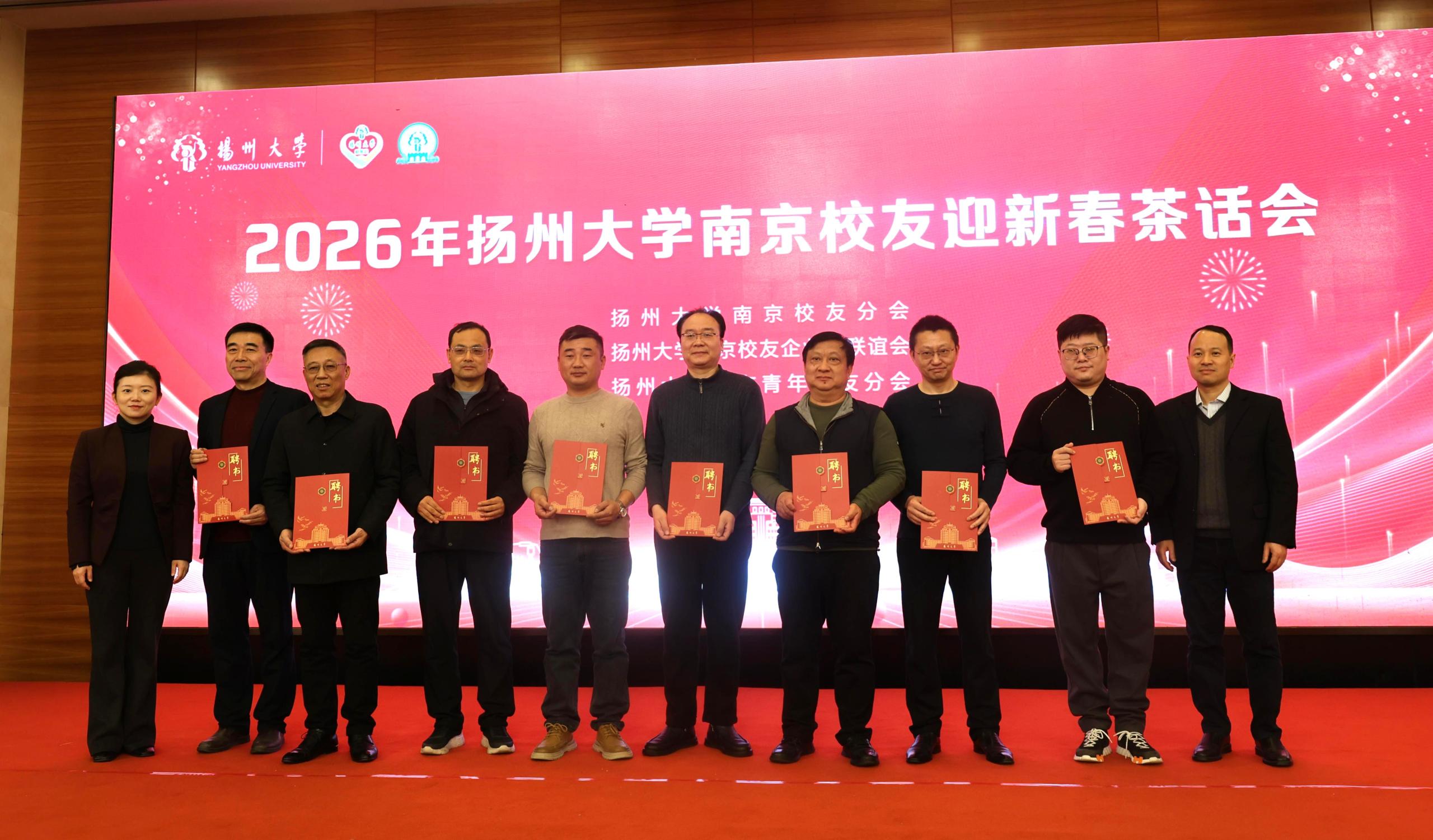 2月1日,扬州大学南京校友2026年迎新春茶话会在南京举行。校党委书记丁建宁出席活动并讲话,校长、校友会会长刘巧泉介绍学校事业发展情况。校党委副书记蔡颖蔚,副校长王承堂,校纪委书记、派驻监察专员邱庆峰,副校长韩杰出席活动,并共同为南京校友分会增补理事颁发聘书。